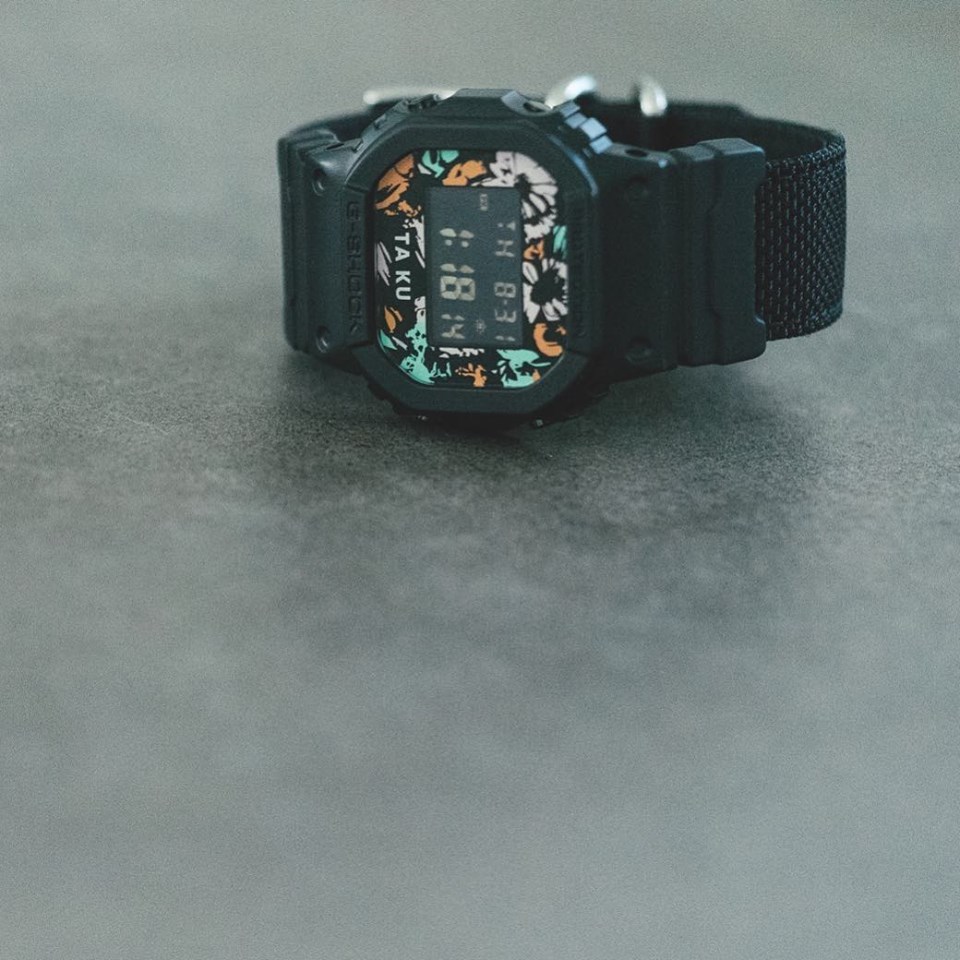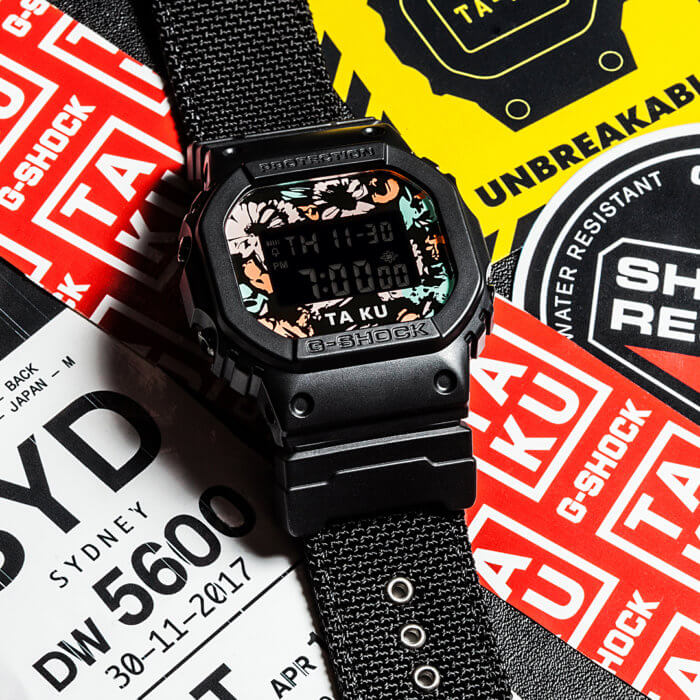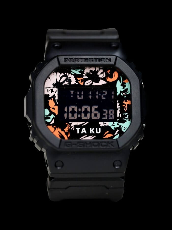 Vor uns ist ein klassisches quadratisches Gehäuse DW-5600 in Schwarz mit einem aktualisierten Aussehen des Zifferblattes. Die Corporate Coloring in Form von Blumen bezieht sich übrigens auf das Cover des ersten Albums des Künstlers - Songs To Make Up To. So sieht es aus: