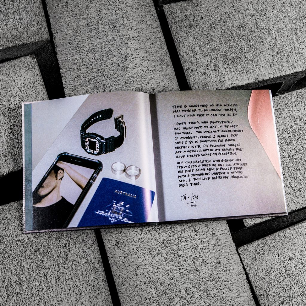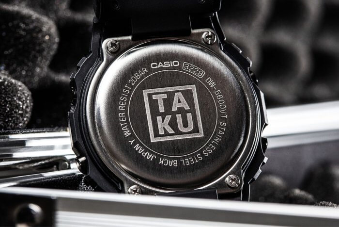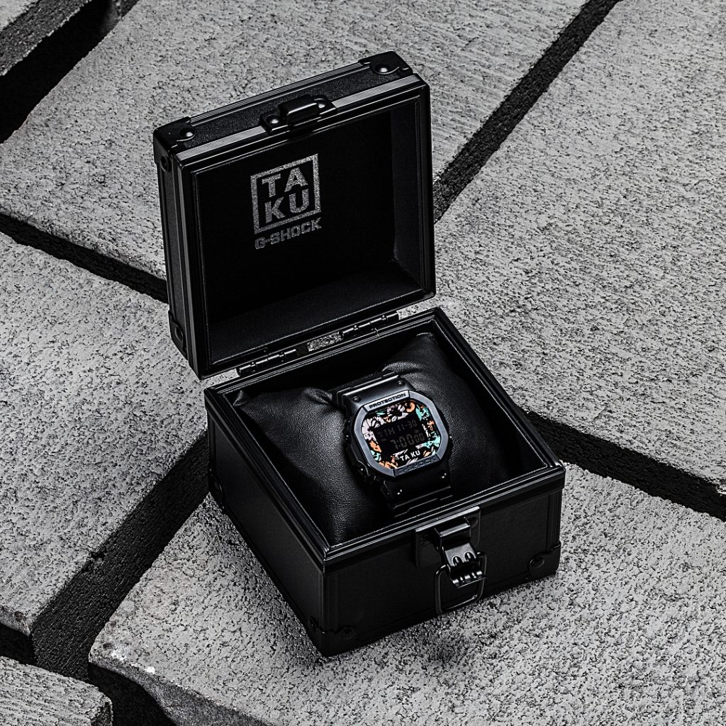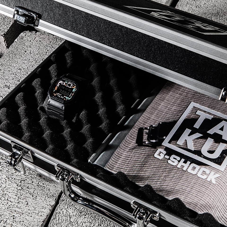 Aber der Fall hat wirklich beeindruckt und überrascht. Einer der wenigen Fälle, in denen die Kosten für die Box wahrscheinlich höher sind als die Kosten für die Uhr selbst. Wir sehen einen riesigen "Koffer" mit dem Logo TA-KU und der Aufschrift G-Shock , in dessen Inneren sich eine proprietäre Box und ein Fanmagazin mit Fotos von Ta-Ku befinden [vergessen zu sagen, dass er auch ein Fotograf ist]. Der Koffer ist nicht im Basispaket enthalten und wird separat als Teil der Deluxe Edition erworben.